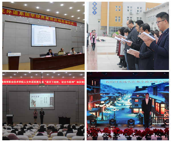 一品二特,指人文外语系品牌活动“弘扬中华传统文化系列活动”和“法制宣传月”,“英语语言月”两个特色活动,为贯彻习近平总书记在全国高校思想政治工作会议上讲话精神,实现全程育人,全方位育人,系部党政领导紧密合作,从学生活动入手将学生专业技能训练和学生团学活动相结合 雷火竞技平台登录,形成系部专业教师和团学部门齐抓共管的新局面,同时,充分发挥专业优势,依托文秘专业开展了“经典诗文朗诵会”,“传统文化知识竞赛”,“全系晨读国学经典”等活动,渐渐形成了系部品牌,并在今年学校“春之声”开幕式上进行了展示,获得师生的好评,体现了大学文化传承的功能,法制宣传月,将法律送进基层,开展了“法制宣传进社区”,“法律援助进社区”,“建立社会弱者法援中心”“大学生模拟法庭”等活动,英语语言月,主要是为了激发同学们学习英语,应用英语的兴趣和热情,开展了“实用英语口语大赛”,“英语翻译比赛”,“英语词汇竞赛”,“大学生英语演讲比赛”等活动,这些活动的开展,有效的动员了全系的资源来投入到青年学生的培养教育中去,初步形成了具有人文特色的文化品牌。