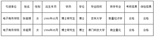 根据《雷火竞技高层次人才引进与管理办法(试行)》规定,经考核、体检,拟引进张丽媛、李超男来校工作,现公示如下: