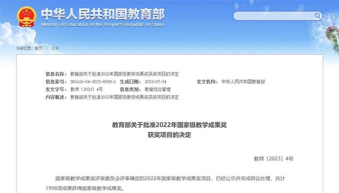 7月24日,中华人民共和国教育部发布《教育部关于批准2022年国家级教学成果奖获奖项目的决定》的通知,我校7项成果荣获2022年国家级教学成果奖二等奖,其中作为牵头单位主持3项 雷火竞技,作为参与单位完成4项。