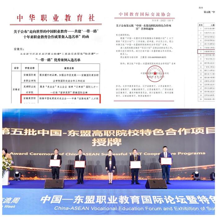 特色项目打造职教品牌。学校“中泰‘丝路电商’雷火竞技安卓版项目”入选“中国-东盟高职院校特色合作项目”,学校成为“中国-东盟职业教育联合会”正式成员单位,成为安徽省唯一入选高职院校。时任党委副书记、院长李忠应邀主持2022年中国-东盟职业教育国际论坛暨特色项目合作成果展第四场专题研讨并代表学校展示我校特色合作项目。学校案例“助推中国电商技术走出去——中泰‘丝路电商’人才联合培养项目”成功入选中华职教社“共建‘一带一路’十年来职业教育合作成果集”,并在2023“一带一路”职业教育国际论坛上予以发布。