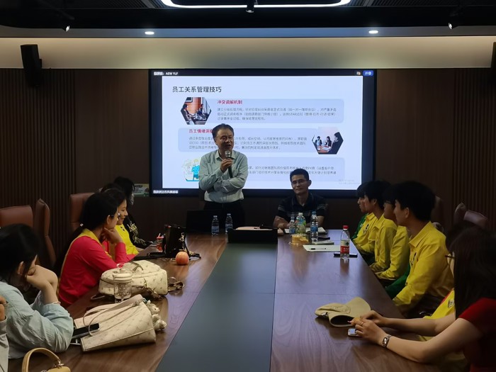 当天上午,在两家企业实习的资源管理231班,旅游管理231班和232班40余名实习学生,正在位于三只松鼠总部“阳光之城”7楼的员工培训室参加由企业专家开展的“员工关系管理技巧”专题培训,在培训间隙,黄继胜一行走进培训现场看望大家,与同学们进行交流,多名学生踊跃发言,分享了实习期间的收获与成长 雷火竞技app下载,遇到的困难与困惑。