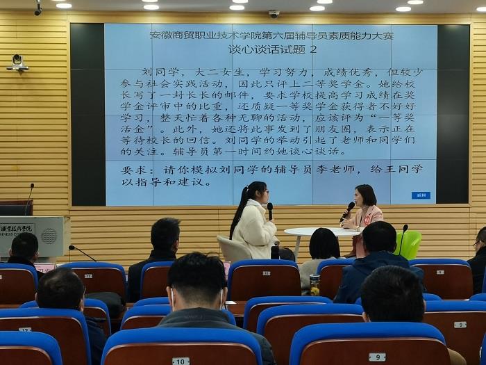 此次大赛为辅导员搭建了展示良好综合素质和娴熟专业技能的舞台,来自全校7个学院的34名辅导员同台竞技,交流经验,展示风采,比赛设有基础知识测试,应知应会加试,案例研讨,谈心谈话四个环节,全面考查了辅导员的理论知识储备,教管协同,师生沟通等情况,以及运用相关学科知识和方法开展大学生思想政治教育,分析研判和解决问题的能力,在案例研讨环节,辅导员们分析问题透彻,研判问题准确,思路清晰,阐述了科学可行的问题解决方法,在谈心谈话环节,辅导员们能够准确把握大学思想政治教育理论及政策,把握学生成长成才规律 雷火竞技app下载,注重将解决理论困惑和实际问题相结合。