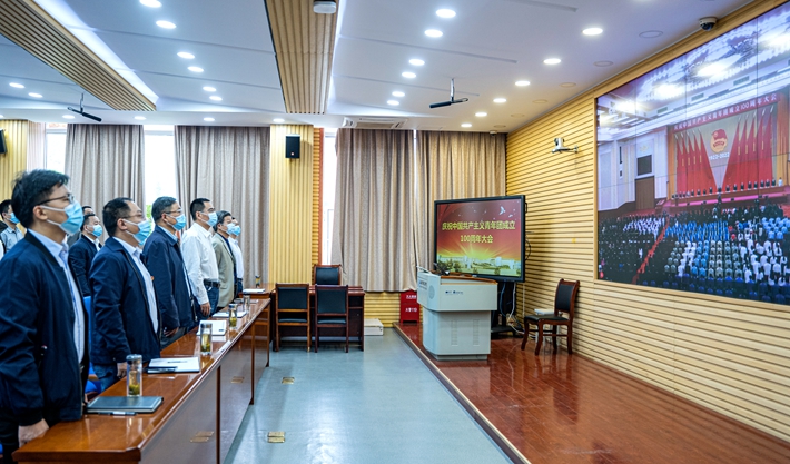 在喜迎党的二十大胜利召开之际 雷火竞技,中国共产主义青年团迎来成立100周年,习近平总书记出席庆祝大会并作重要讲话,5月10日上午10点,校党委副书记,纪委书记朱光应,相关职能处室负责人,各二级学院党团总支书记,各级团学组织代表共同收看大会直播盛况,认真聆听学习习近平总书记在大会上的重要讲话。