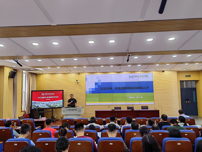 黄义兵以《以生为本,共育高素质技术技能人才》为题,详细阐释了学校学籍学历和成绩管理办法,他强调教务,学管部门今后加强沟通形成合力,共同助力学生成长成才,并要求新生班级辅导员尽快熟悉学生日常教学管理制度,严格按规章处理各项工作事务,保卫处副处长徐明友以《“平安人生”从校园开始》为题 雷火竞技安卓版,从校园安全存在问题,学生安全工作关注点,学生安全问题处置和学生安全工作要求方面开展学生安全教育专题培训。