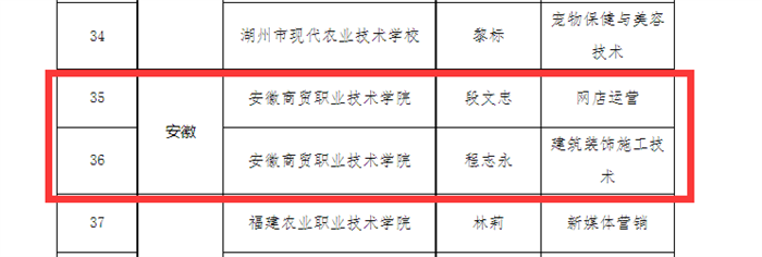 近日,农业农村部公布了《首届涉农职业院校服务乡村振兴“名课名师”资助项目名单》,安徽省仅我校入选该项目 雷火竞技,我校段文忠老师主持的《网店运营》课程,程志永老师主持的《建筑装饰施工技术》课程成功入选。