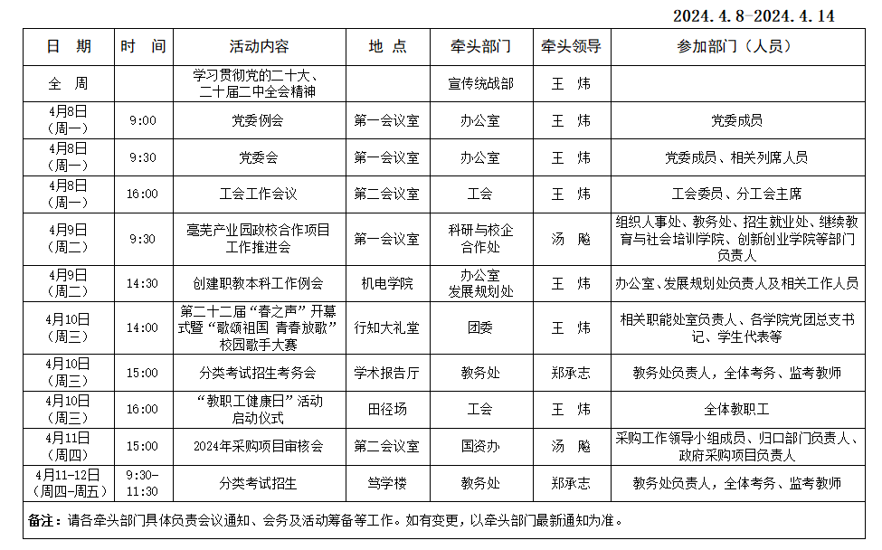"雷火竞技注册入口" 学校第八周主要活动安排表