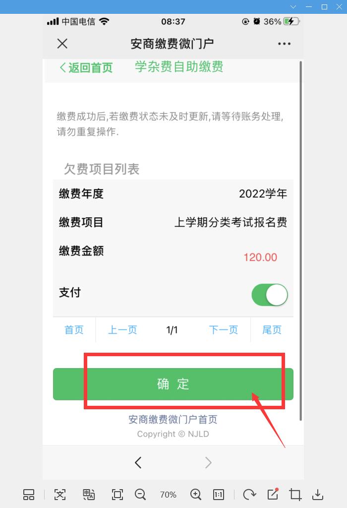 3,点击“确认”按钮,进行缴费。 雷火竞技手机版。